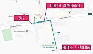 - Accessible en transports en commun (bus ligne 43/1 Ciney – Dinant (arrêt Achêne Eglise : 08 minutes de la gare)