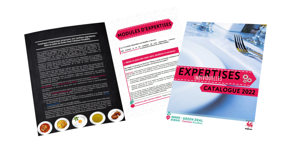- Vous souhaitez solliciter une expertise ? Afin d’activer le module qui vous intéresse, contactez-nous à l'adresse info@greendealcantines.be en précisant le numéro du module souhaité (cfr détails dans le catalogue).