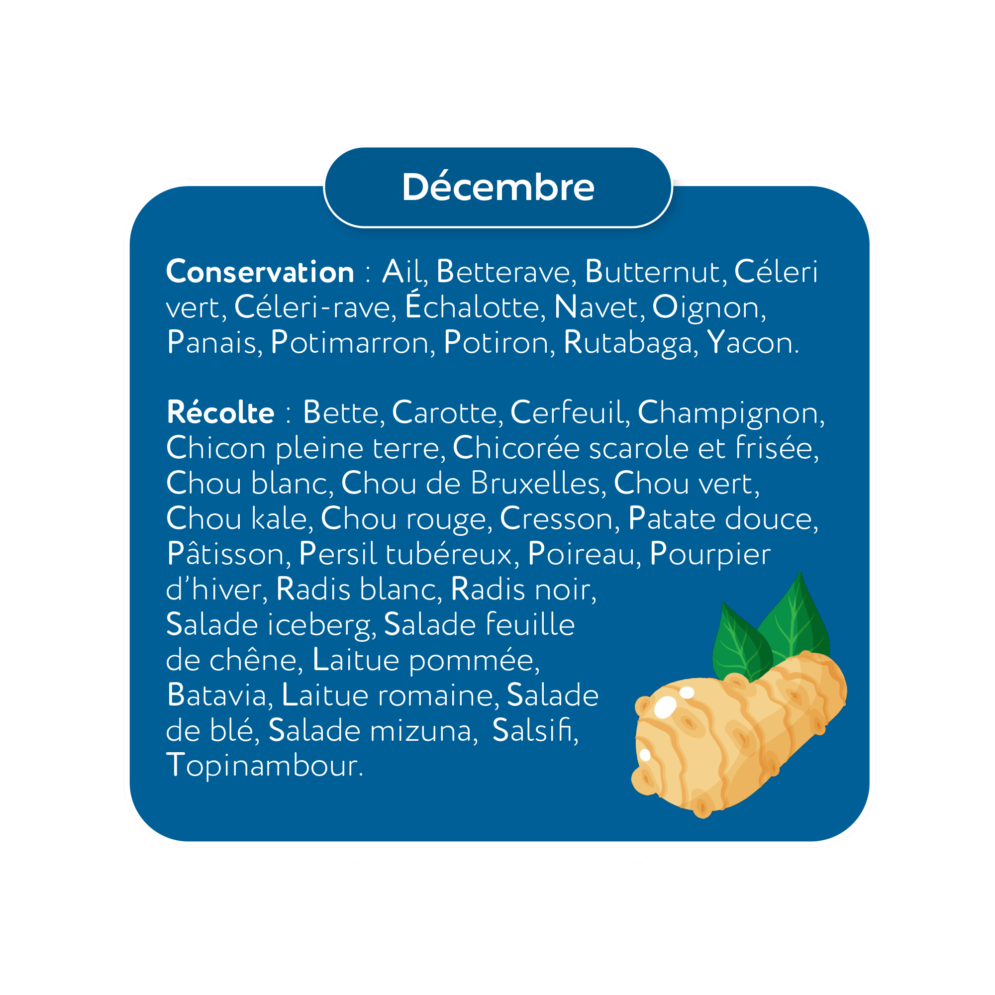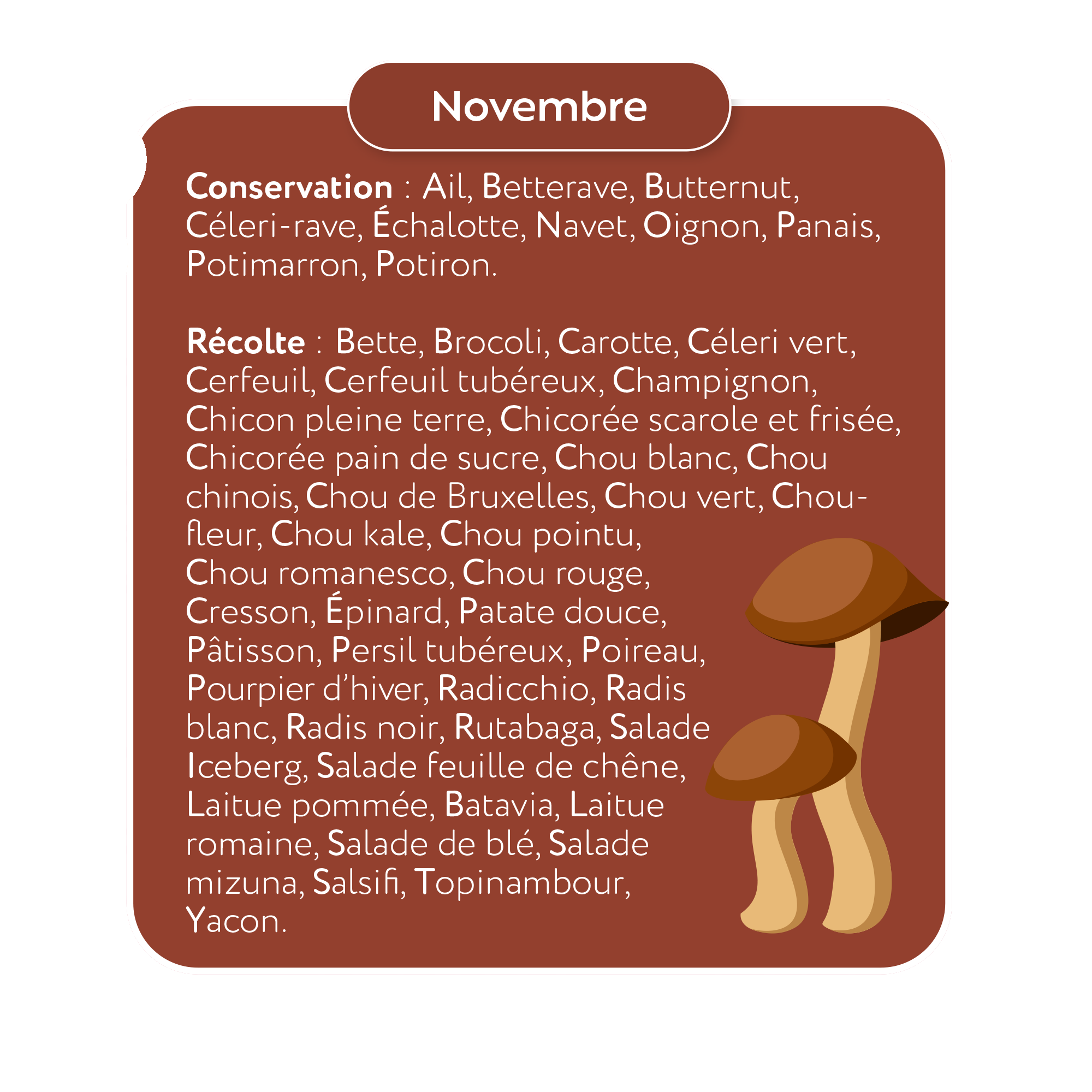 - Visibiliser les légumes de saison dans le menu (cfr calendrier) : les mettre en gras ou en couleur + indiquer dans la légende qu’il s’agit des légumes de saison.