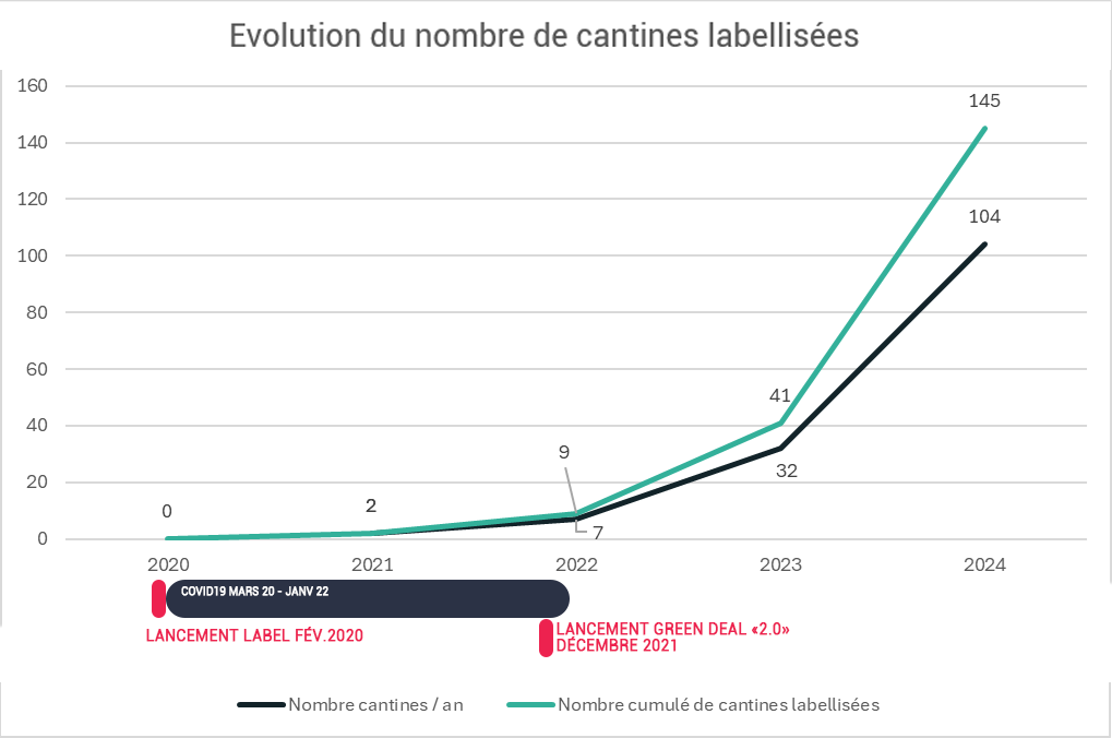 Avec 41 cantines labellisées fin 2023 (représentant 728.000 repas/an), les résultats atteints par le Label Cantines Durables sont très encourageants et offrent des perspectives prometteuses.