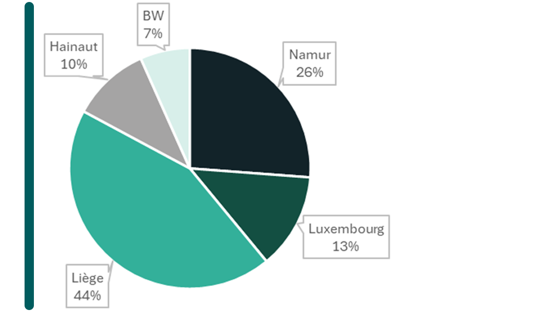 Les cantines reprises dans cette analyse se situent sur tout le territoire de la Wallonie. Les provinces de Liège et de Namur sont davantage représentées en raison de l’implication forte de la société de catering « TCO Service » et de la Ville de Liège.