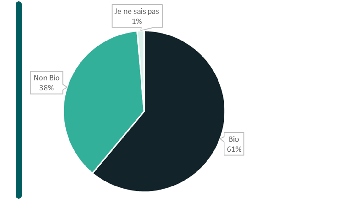 Les produits bio ont été largement plébiscités par les cantines du Coup de pouce 2023 et concernent 61% des achats en termes de quantités. Pour 78% des cantines interrogées, le subside leur a permis d’augmenter la proportion de produits bio.