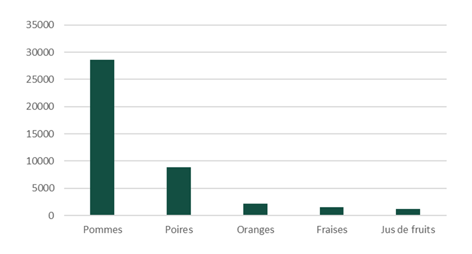 Pour les fruits, ce sont les pommes qui arrivent en tête.