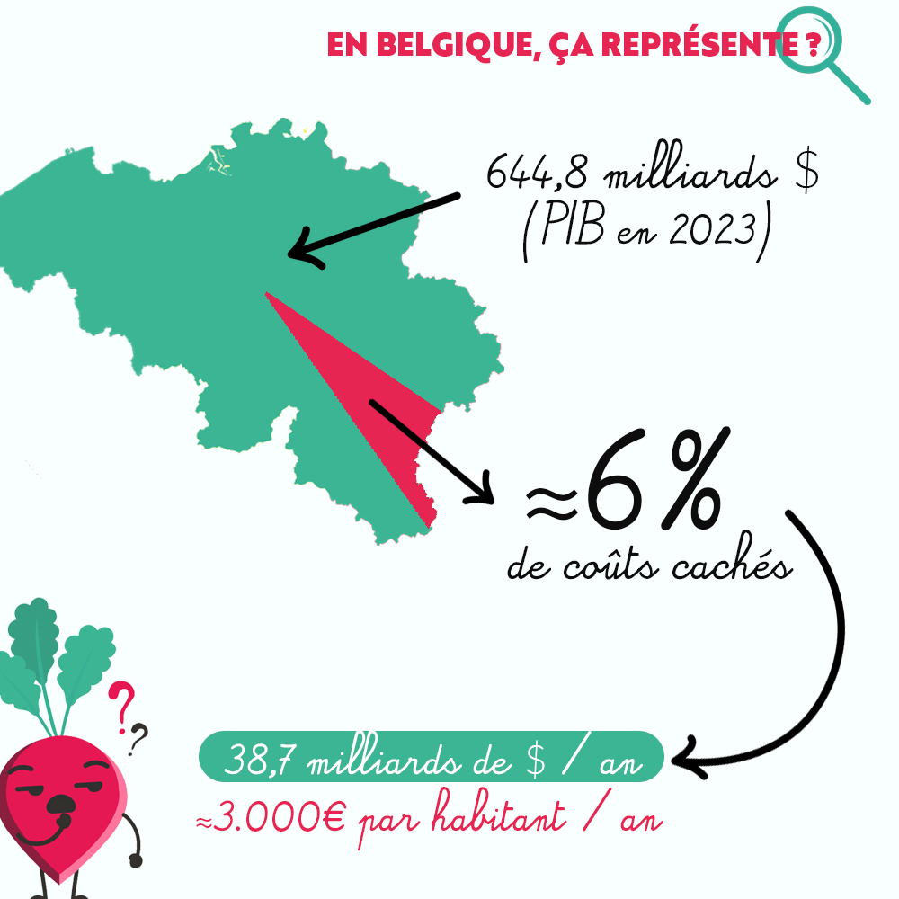 En Belgique par exemple, ces 6% représentent environ 38,7 milliards de dollars, soit plus de 3.000€ de coûts cachés par an et par habitant !