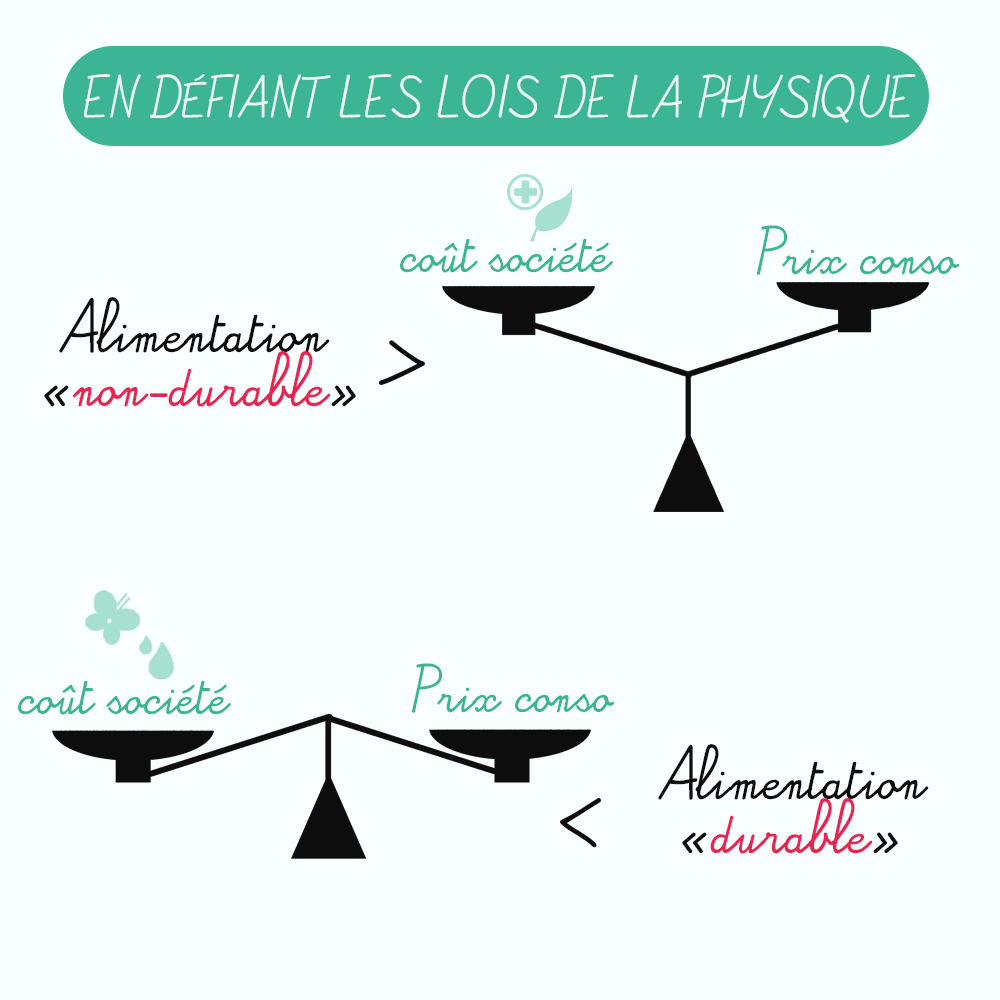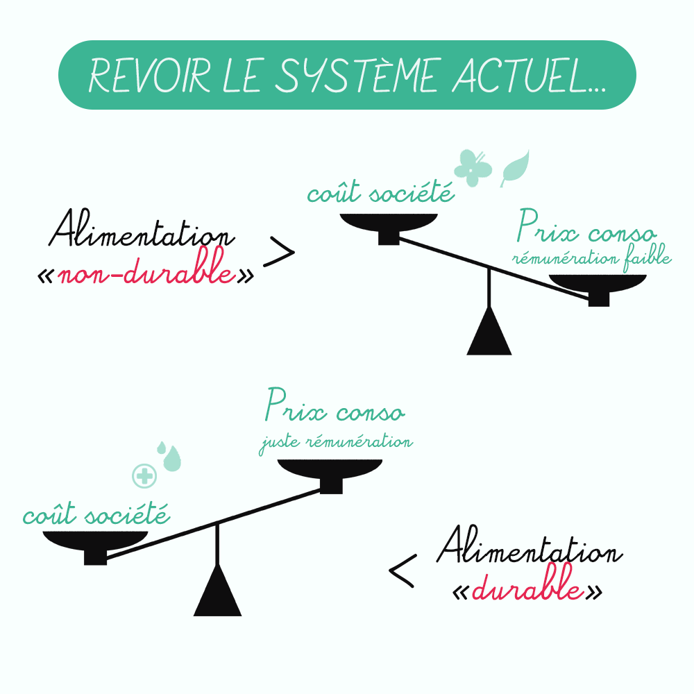 A l’inverse, les initiatives durables, qui favorisent le circuit court et une juste rémunération des acteurs de la production, coûtent globalement plus cher.