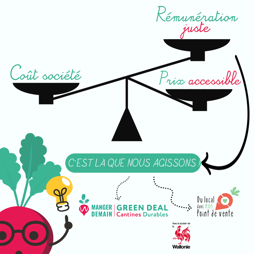 Pour définir des priorités et des leviers efficaces, la FAO préconise une approche fondée sur la comptabilisation du coût complet (CCC). C’est dans cette optique que nous avons tenté de défier les lois de la physique en déclinant notre « équation insoluble » alliant prix accessible et juste rémunération qui a inspiré les coups de pouce « du local dans l’assiette » et « du local dans mon point de vente ».