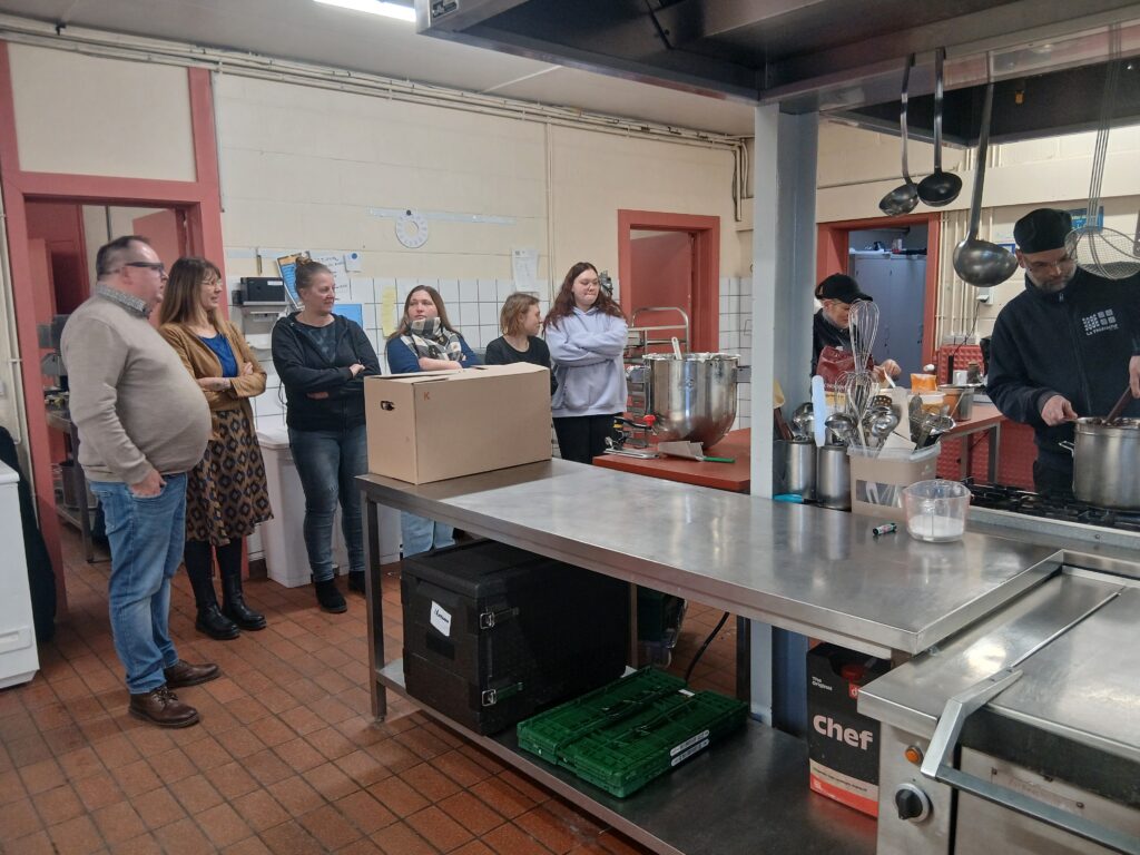 Pierre Lempereur nous explique plus spécifiquement l’accompagnement technique proposé à l’Ecole de la Croix. « Il a permis de mobiliser l’ensemble du personnel de service au cours d’une journée de formation en présence de l’équipe du service traiteur et de son chef. Cette formation a jeté les bases d’une relation de confiance entre ces métiers de service et de cuisine et a permis à la cellule Manger Demain de présenter les objectifs du Green Deal. » Pour le Directeur de l’école, « ça permet déjà de reconnaitre ce personnel dans son rôle et de valoriser son travail. Ce travail de première ligne est essentiel pour l’éducation au goût. La formation permet de donner le départ d’une dynamique à poursuivre ».