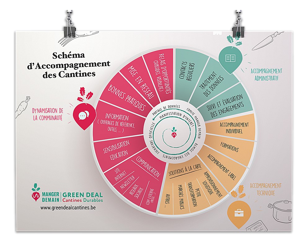 Vous pourrez également actionner certains coups de pouce afin de faciliter votre transition. Ceux-ci consisteront en une aide financière conditionnée et plafonnée pour l’achat d’équipements nécessaires aux changements de pratiques au sein de votre cuisine mais également à une prise en charge de certains surcoûts engendrés par l’achat de produits locaux et durables entrant dans la confection de vos repas.