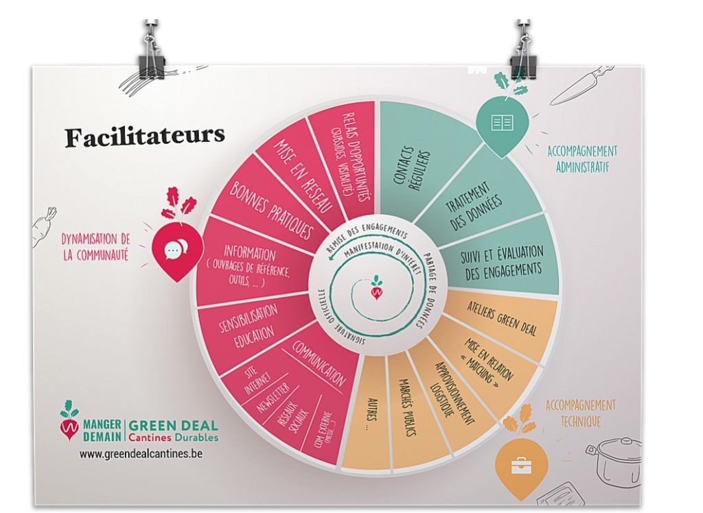 La motivation du signataire et de son équipe est le moteur principal pour atteindre cet enjeu de taille qu’est la transition de la restauration de collectivité vers une alimentation durable. Mais… même avec une grande motivation, nous savons que ce n’est pas simple ! C’est pourquoi nous proposons aux signataires un panel complet de services, adaptés à leur profil (cantines, facilitateurs, autorités politiques), facilitant leur démarche.