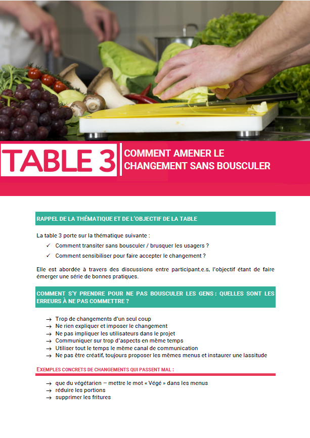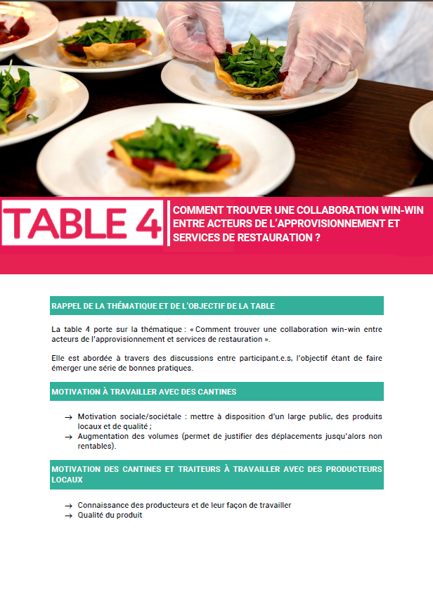 Compte-rendu de la table “Proposer des recettes végétariennes en restauration collective” Télécharger le document Compte-rendu de la table sur l’approvisionnement local Télécharger le document