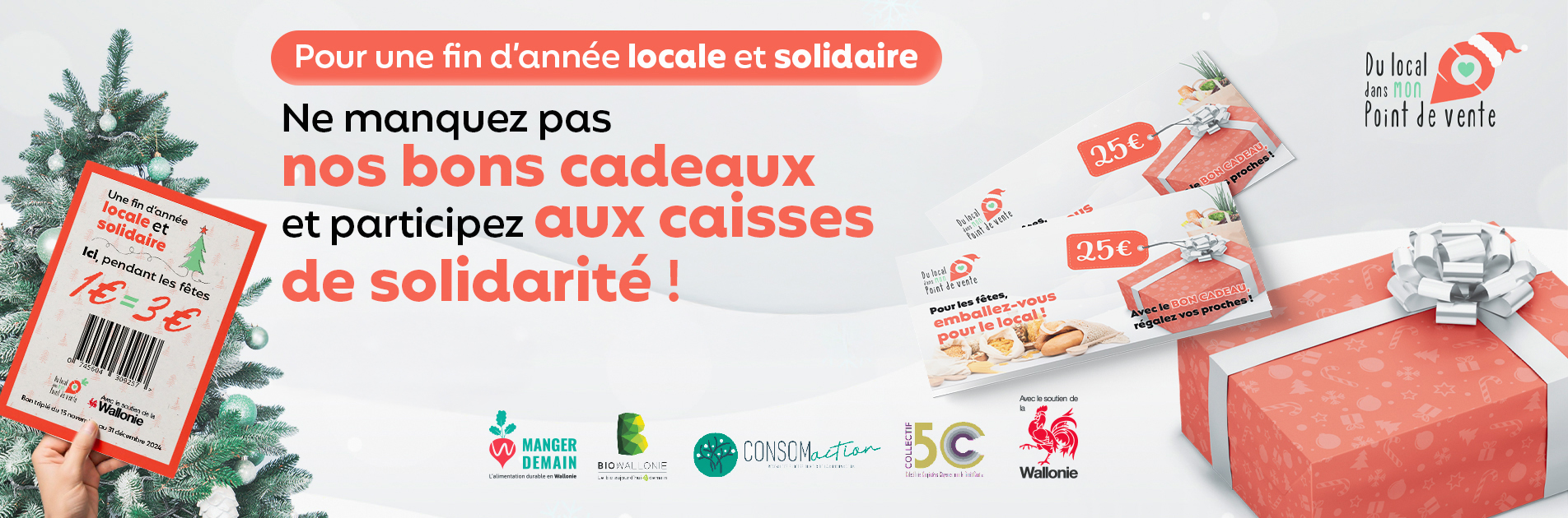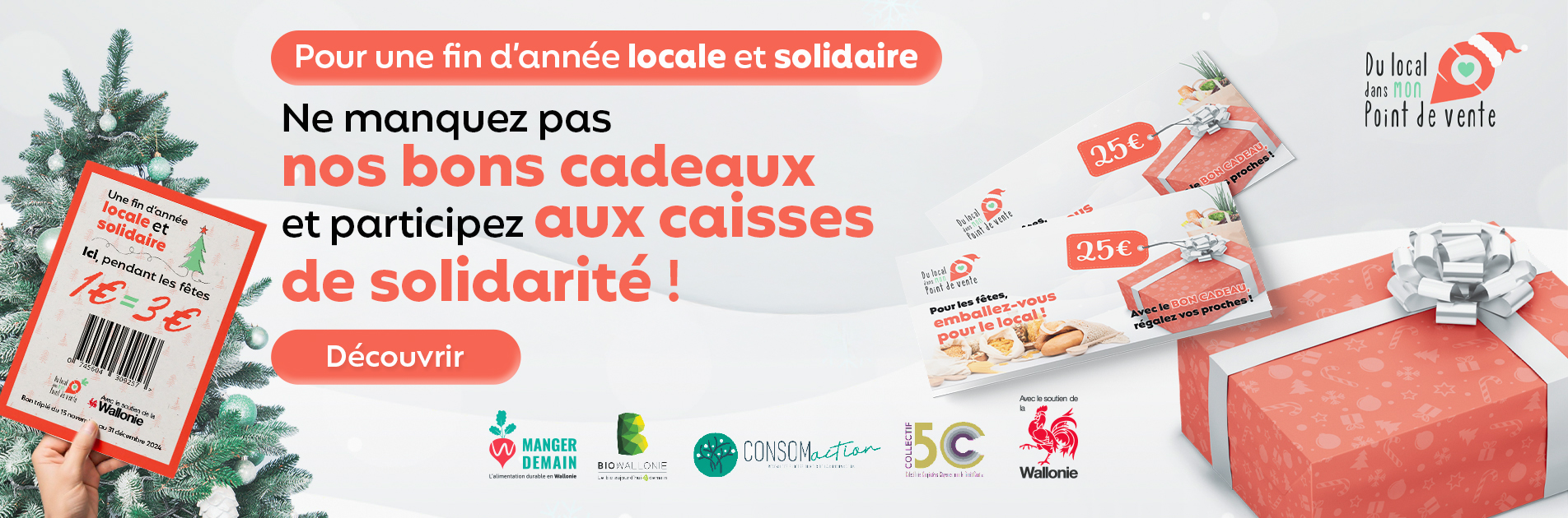 Donnez du sens aux cadeaux de fin d’année en optant pour des cadeaux de qualité, qui soutiennent nos producteur·rices ! Participez également à une action de solidarité qui profite aux familles précarisées !