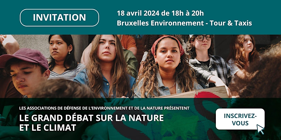 Accueil Events - Manger Demain Coin des events durables Le grand débat politique sur le climat et la nature Le grand débat politique sur le climat et la nature Infos et inscriptions + Ajouter à mon Agenda Google + iCal / Outlook export L'événement est terminé. Date Avr 18 2024 Expiré! Heure 18 h 00 min - 20 h 00 min Lieu Bruxelles Environnement (Site de Tour & Taxis - Avenue du Port 86C/3000 à 1000 Bruxelles) Catégorie Coin des events durables Partagez cet événement