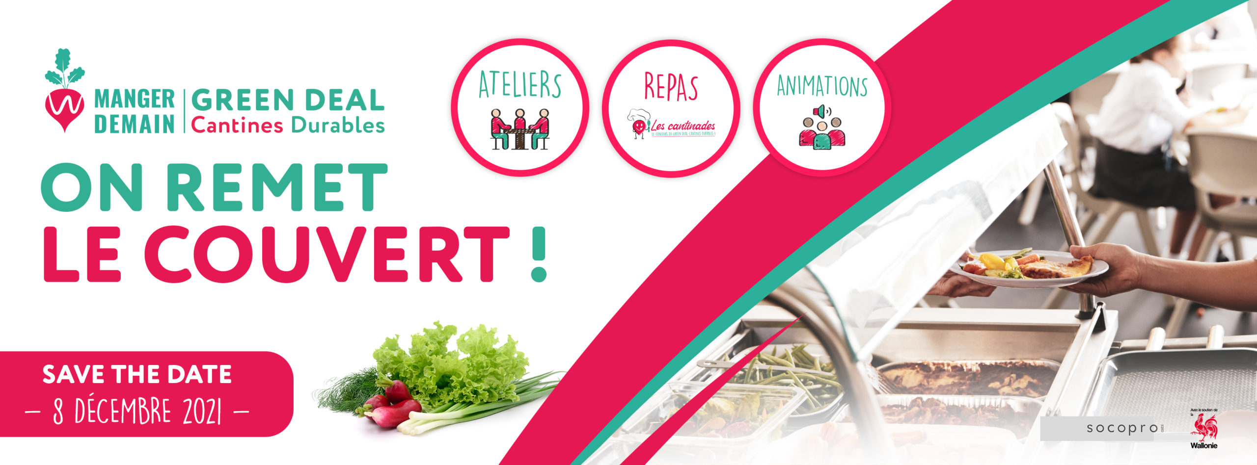 Compte-tenu du contexte sanitaire actuel, l’événement annuel Green Deal Cantines Durables « On remet le couvert » n’aura pas lieu en présentiel. En effet, l’essence de celui-ci étant de vous rassembler autour du Green Deal afin de partager les bonnes pratiques et valoriser les projets entrepris, nous sommes convaincus qu’un report des activités en présentiel au 30 mars 2022 nous permettra de vous retrouver prochainement, en nombre, dans un climat plus serein.