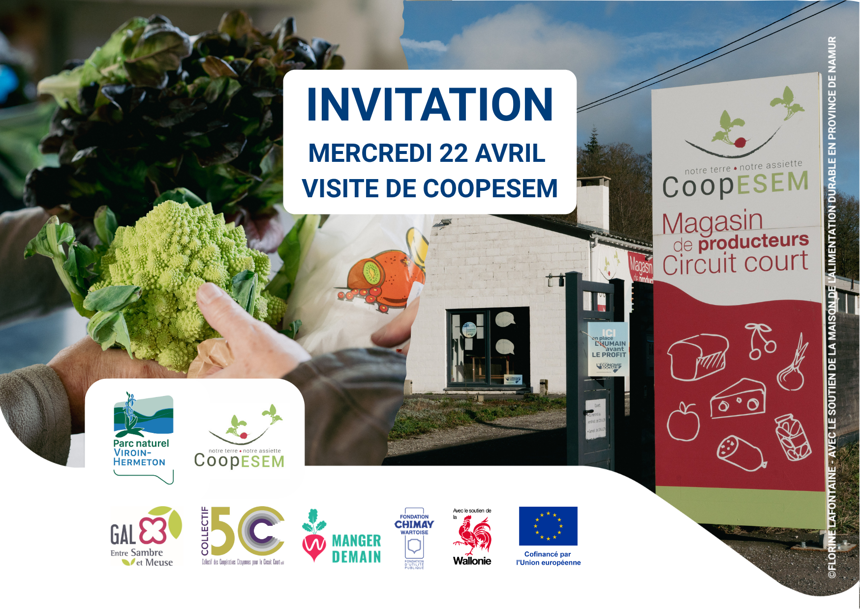 Nous avons le plaisir de vous inviter le mercredi 22 avril de 9h45 à 12h30 à la visite-découverte de la coopérative CoopESEM, organisée par le Parc naturel Viroin-Hermeton et CoopESEM, avec le soutien du GAL ESEM, du Collectif 5C et de la Cellule Manger Demain.