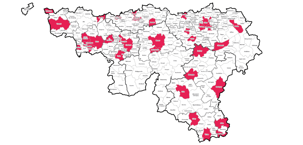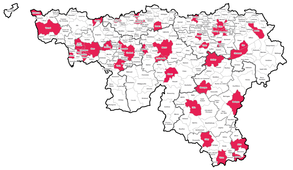 Ecoles communales de la Ville d’Arlon (16 cantines) : école communale maternelle et primaire du centre, école de Frassem, école de Waltzing, école de Barnich-Sterpenich, école de Weyler, école des Lilas, école de Schoppach, école d’Udange, école de Toernich, école de Stockem, école de Fouches, école de Heinsch, école de Freylange, école du Galgenberg et école rue de Neufchâteau (décembre 2024).